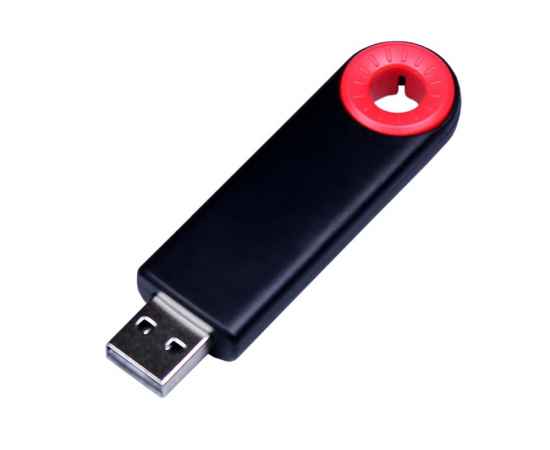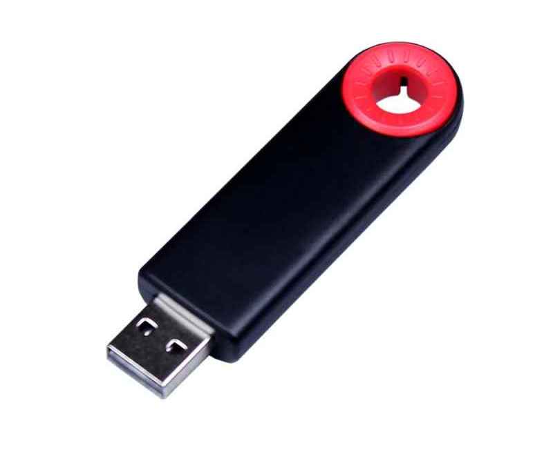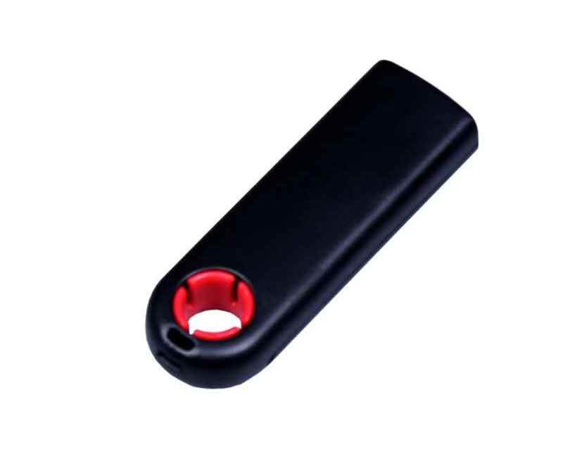 Полуовальная флешка с цветным кольцом, выдвижной механизм., объем памяти 8 Гб. Пластиковый корпус.