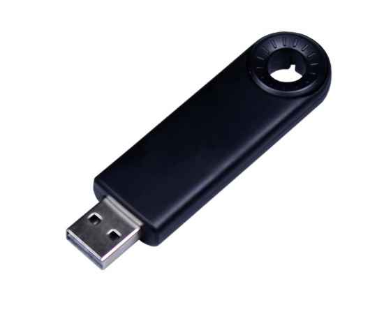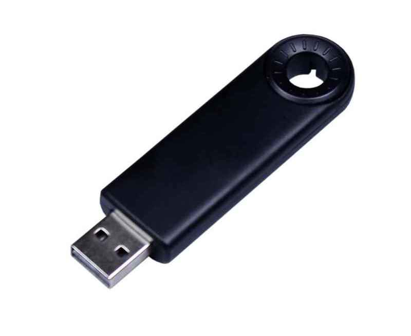 Полуовальная флешка с цветным кольцом, выдвижной механизм., объем памяти 32 Гб. Пластиковый корпус.