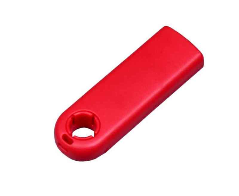 Полуовальная флешка с цветным кольцом, выдвижной механизм, объем памяти 32 Гб. Пластиковый корпус.