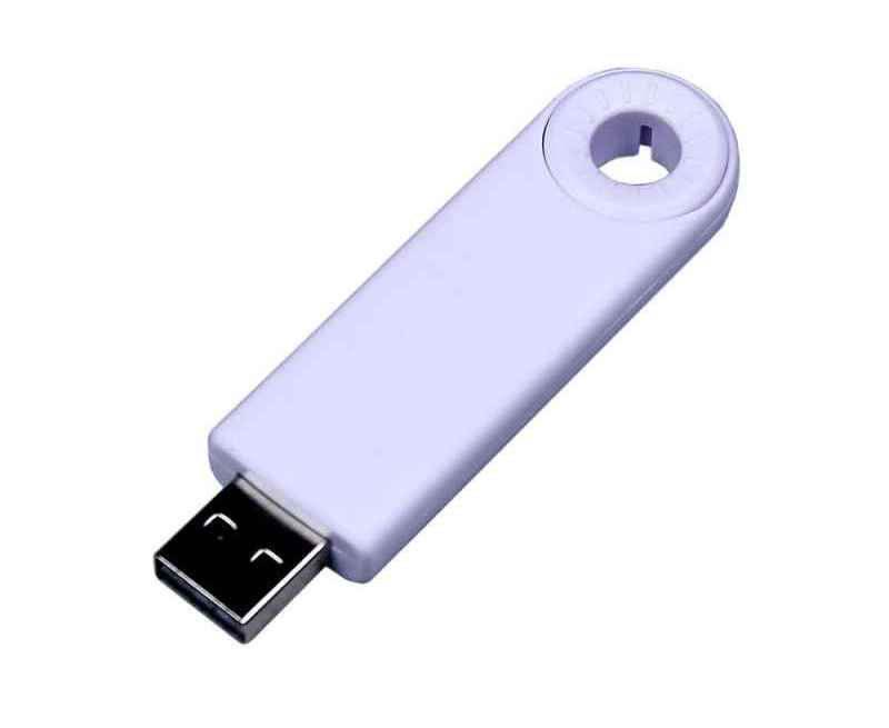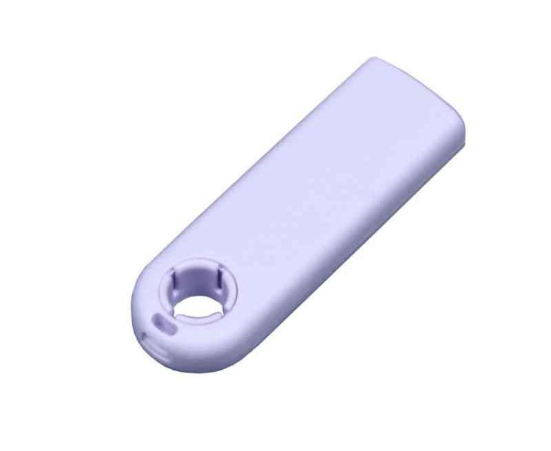 Полуовальная флешка с цветным кольцом, выдвижной механизм, объем памяти 32 Гб. Пластиковый корпус.