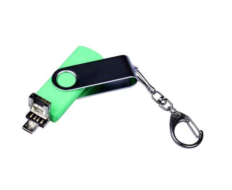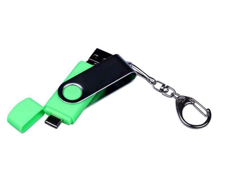 Флеш-накопитель поворотный механизм, c двумя дополнительными разъемом Micro USB и TypeC., объем памяти 32 Гб. Пластиковый корпус.