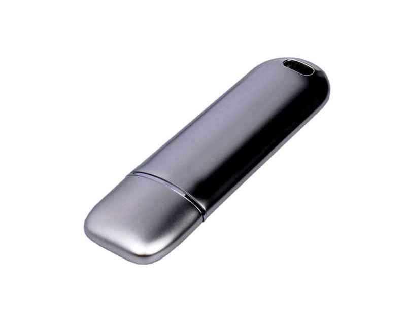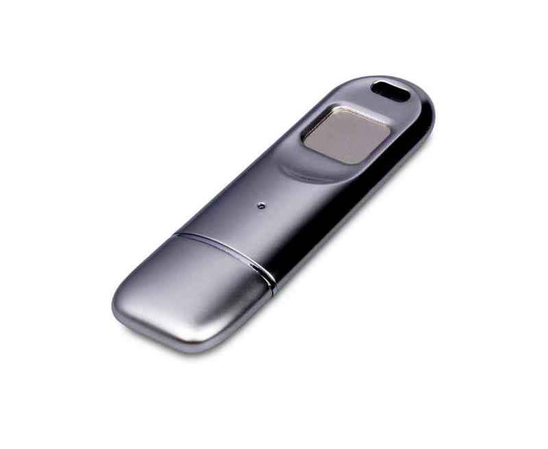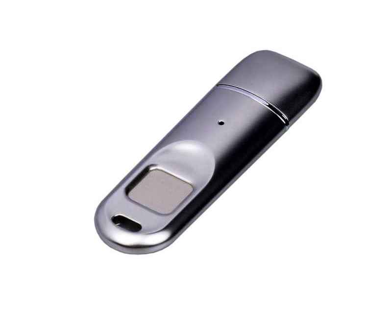 Классическая металлическая флешка с колпачком и сканером отпечатков пальцев.