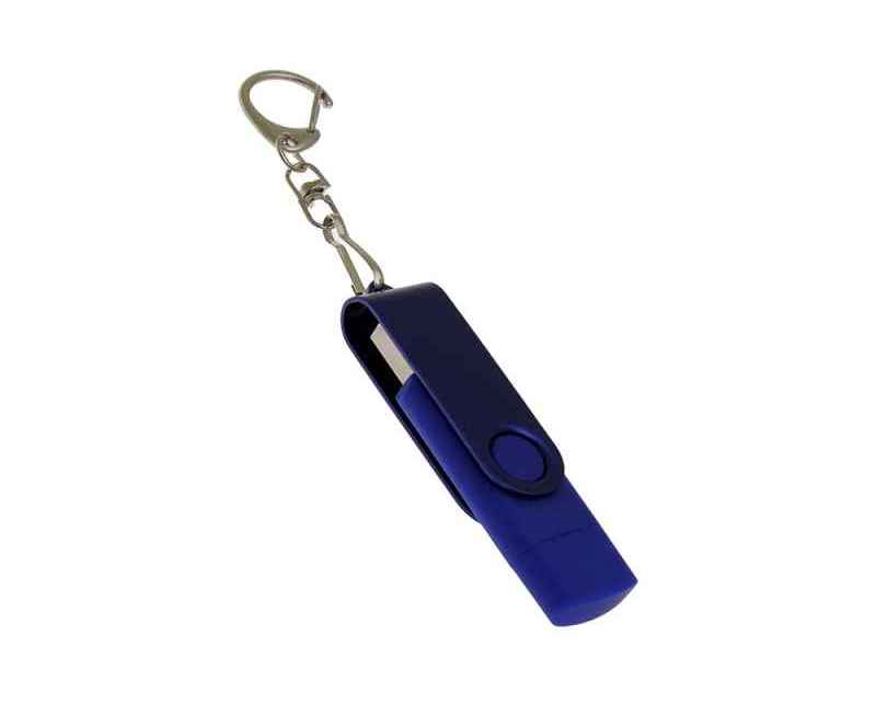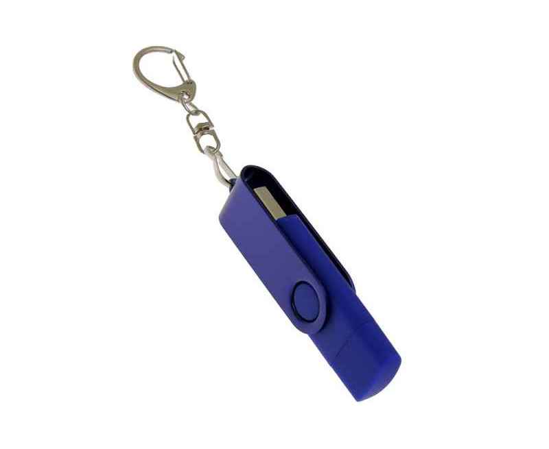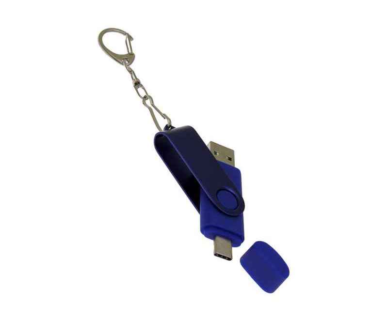 Флеш-накопитель 2 в 1 поворотный механизм, c дополнительным разъемом Type-C с одноцветным металлическим клипом, объем памяти USB3 32 Гб. Пластиковый корпус.
