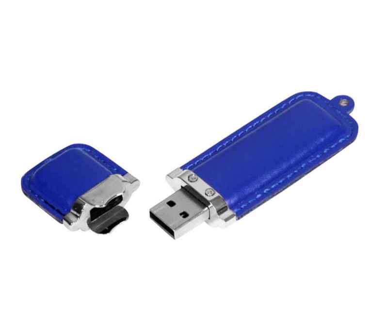 Флеш-накопитель классической прямоугольной формы, 128 Гб. Кожаный корпус.