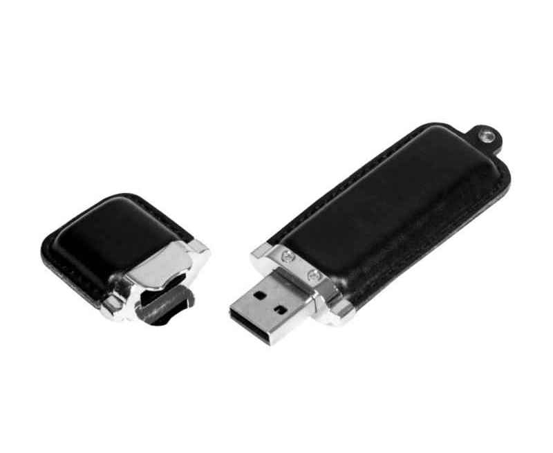 Флеш-накопитель классической прямоугольной формы, 128 Гб. Кожаный корпус.