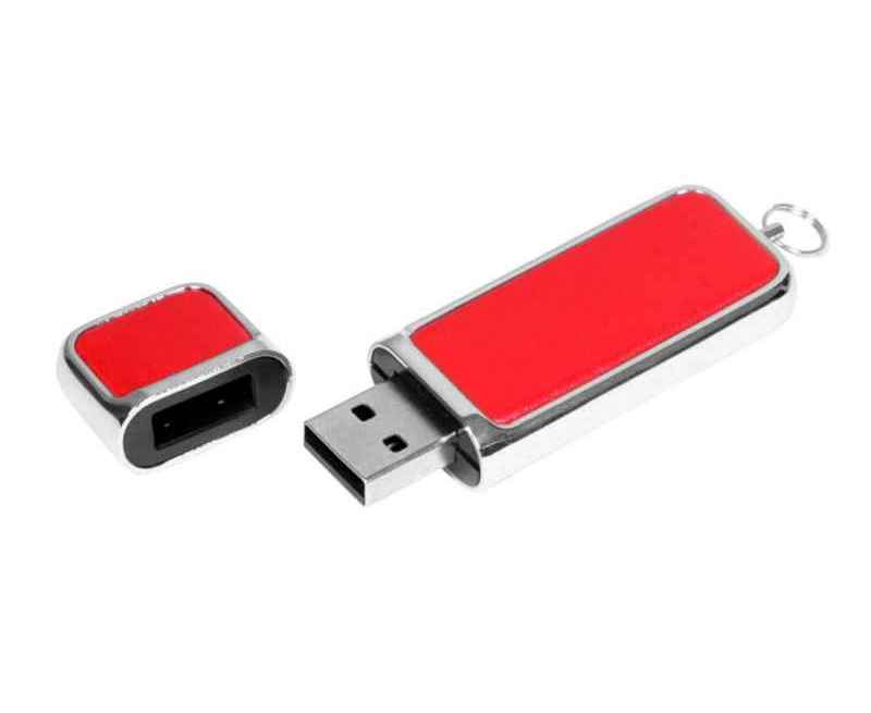 Флеш-накопитель компактной формы, 32 Гб. Кожаный корпус.