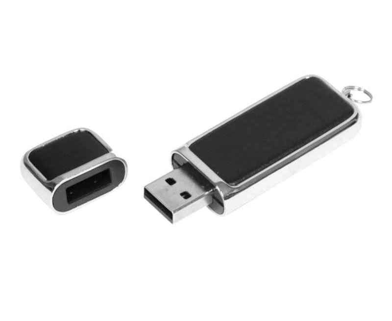 Флеш-накопитель компактной формы, 32 Гб. Кожаный корпус.