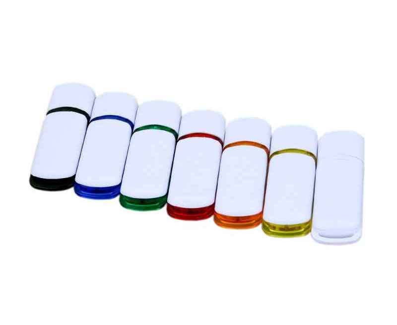 Флеш-накопитель промо прямоугольной классической формы с цветными вставками, объем памяти 32 Гб. Пластиковый корпус.