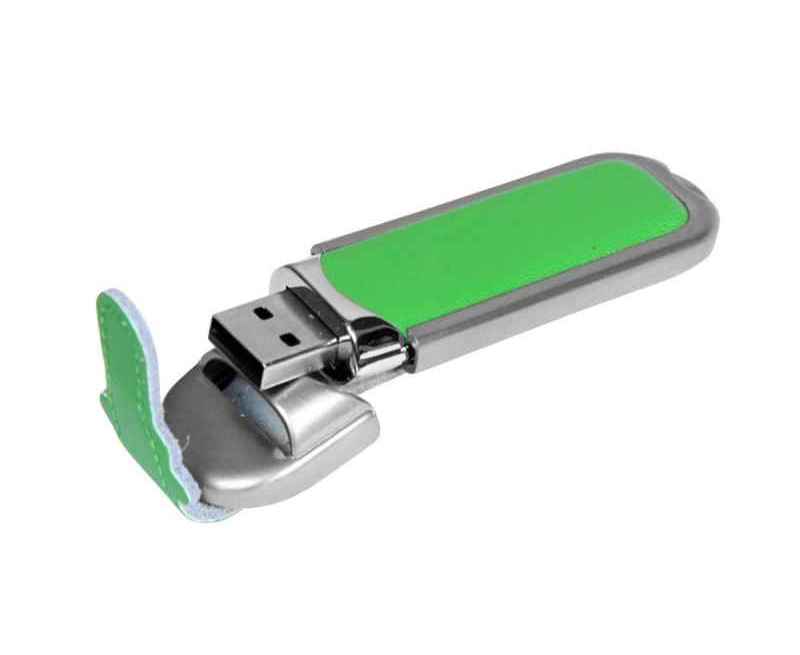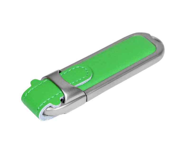 Флеш-накопитель с массивным классическим корпусом, 32 Гб. Кожаный корпус, металлические вставки.