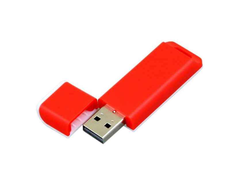 Флеш-накопитель прямоугольной формы, оригинальный дизайн, двухцветный корпус, объем памяти 32 Гб. Пластиковый корпус.