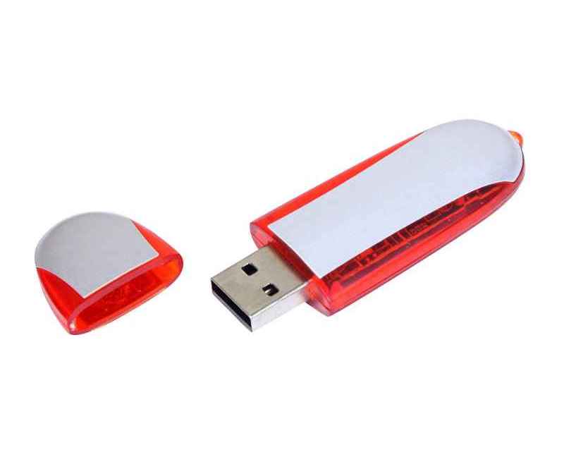 Флеш-накопитель промо овальной формы, 32 Гб. Пластиковый корпус, металлические вставки.
