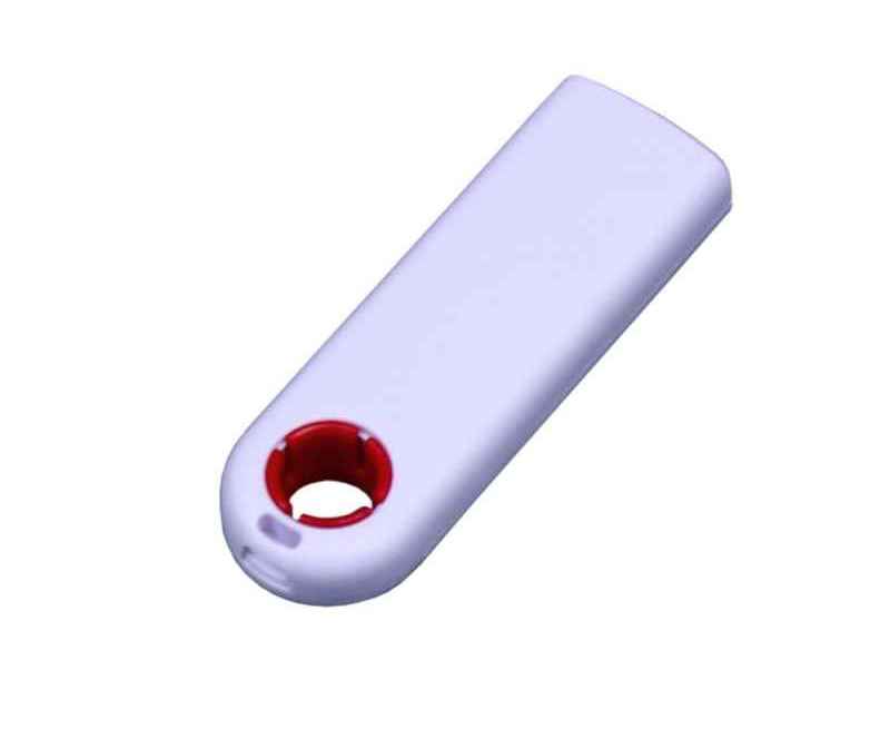 Полуовальная флешка с цветным кольцом, выдвижной механизм, объем памяти USB3 32 Гб. Пластиковый корпус.