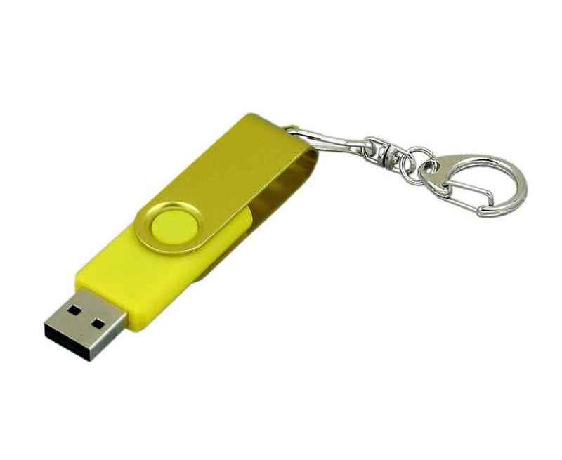 Флеш-накопитель промо поворотный механизм, с однотонным металлическим клипом, 128 Гб. Пластиковый корпус.