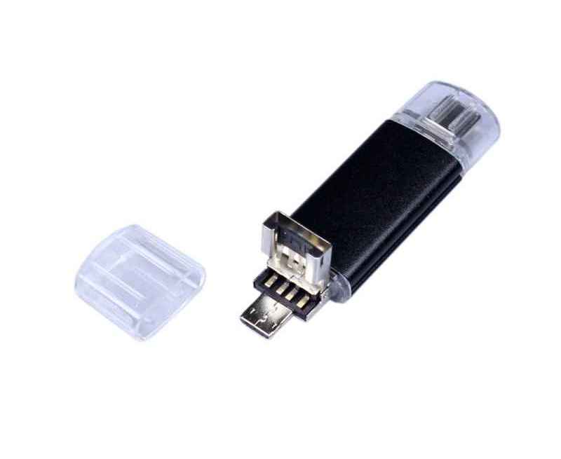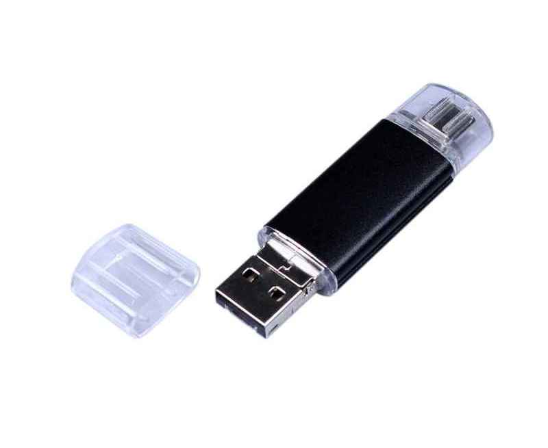 Флеш-накопитель c двумя дополнительными разъемом Micro USB и TypeC, металлический корпус., объем памяти USB3 32 Гб. Металлический корпус.