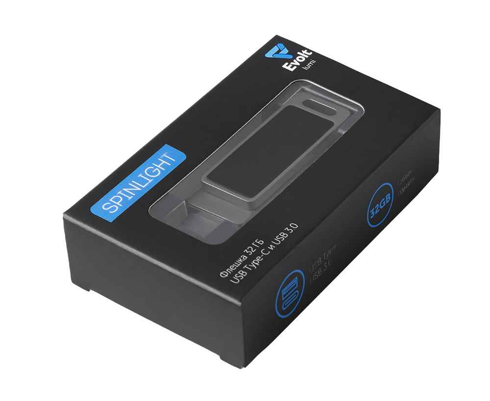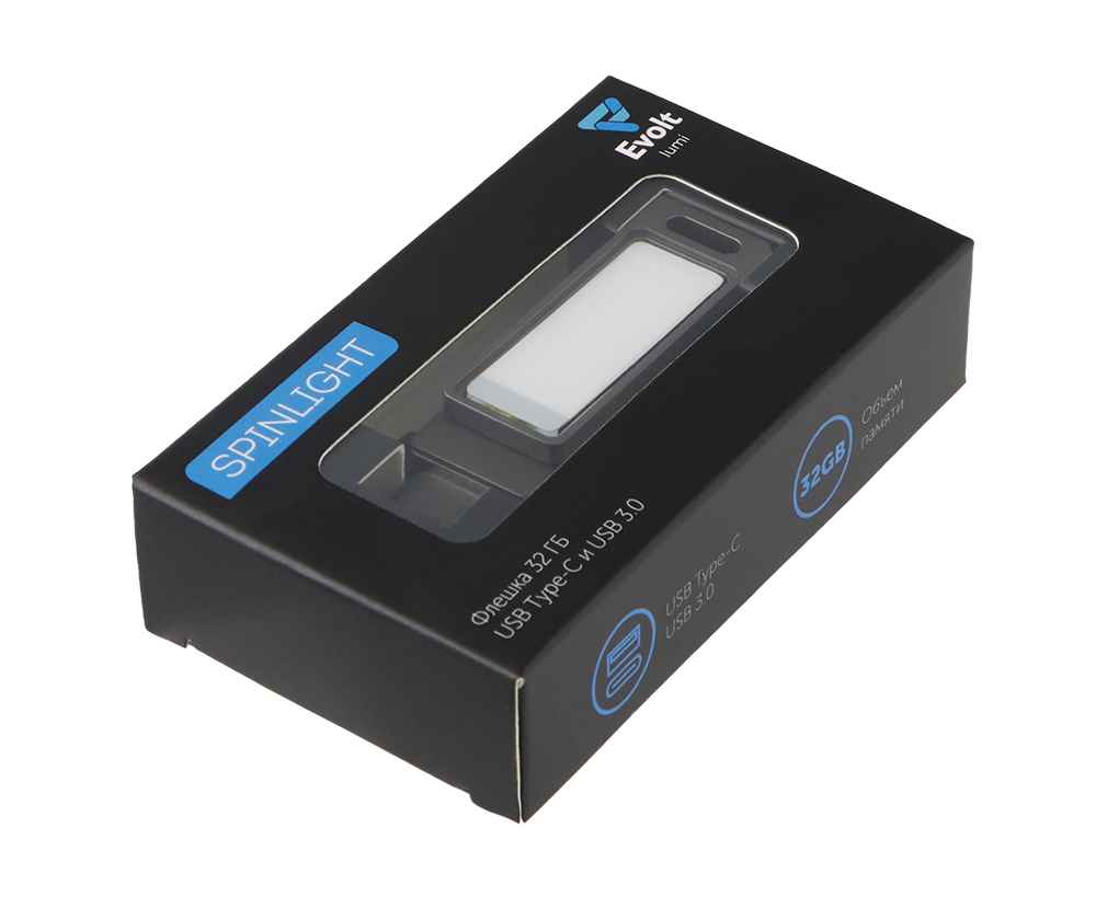 Подробнее о Evolt USB3.0/ Type-C флешка 2в1 на 64 ГБ Спинлайт с подсветкой, 823773