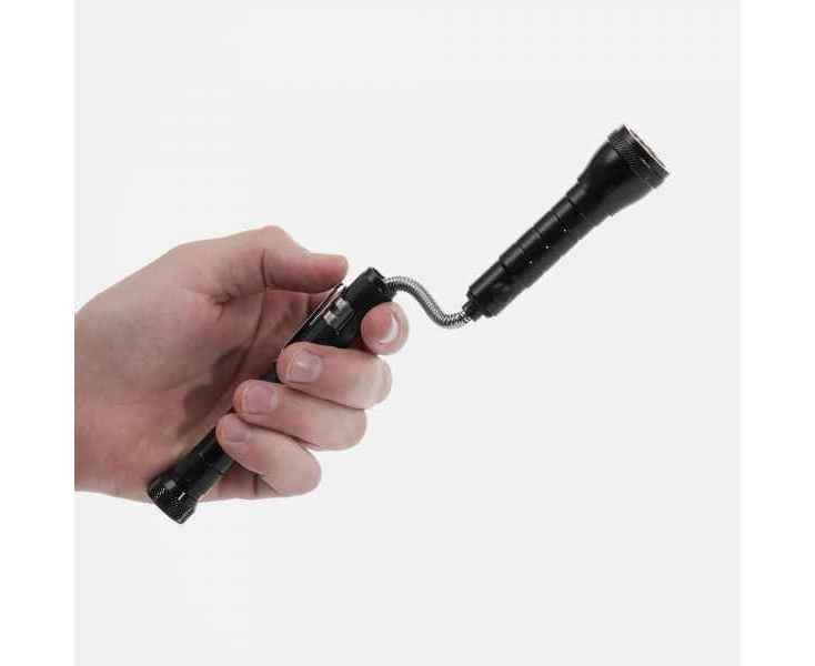 Компактный фонарик Flexion — идеальное средство для освещения труднодоступных мест. Регулируемая длина и гибкое крепление лампочки позволяют направленно и точечно подсвечивать нужные зоны в самых сложных местах, например, под капотом или за мебелью. С помощью магнита на корпусе можно закрепить фонарь на металлической поверхности, освободив руки, —особенно удобно при ремонте, строительстве или работе в гараже. Магнит на излучателе поможет с легкостью достать упавшие в узкие щели металлические предметы.
