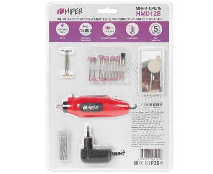 Подробнее о HIPER Гравер (мини дрель) HIPER HMD12B, в блистере, в комплекте с аксессуарами