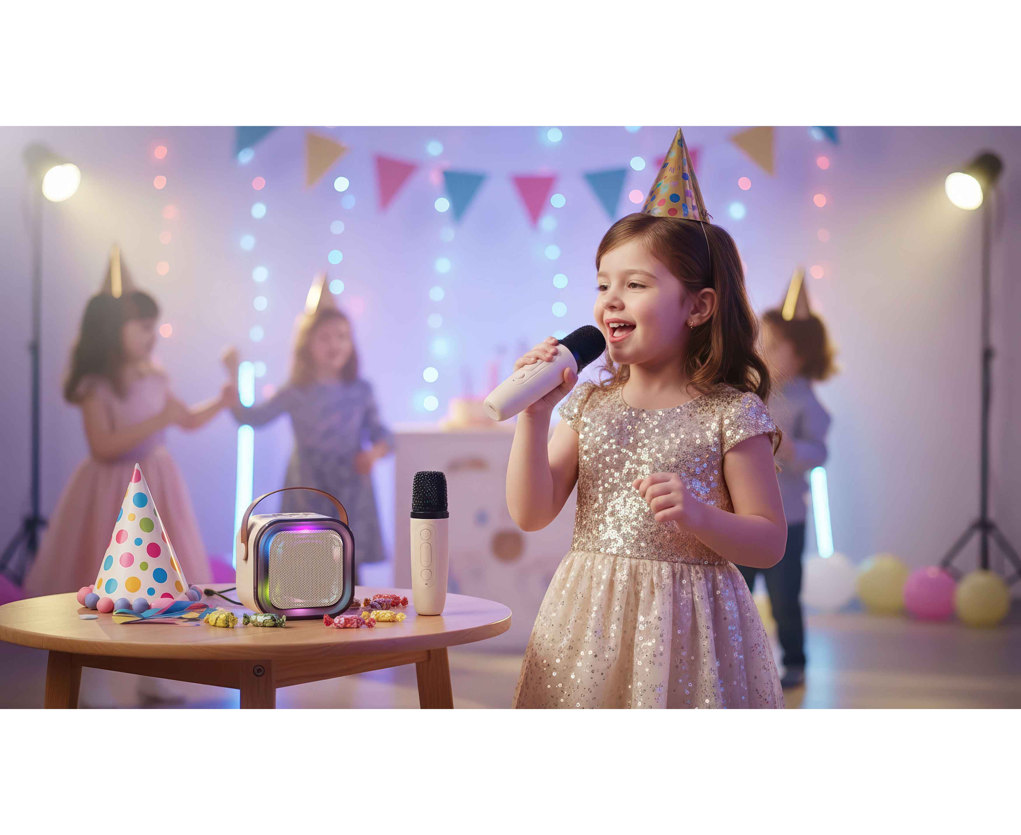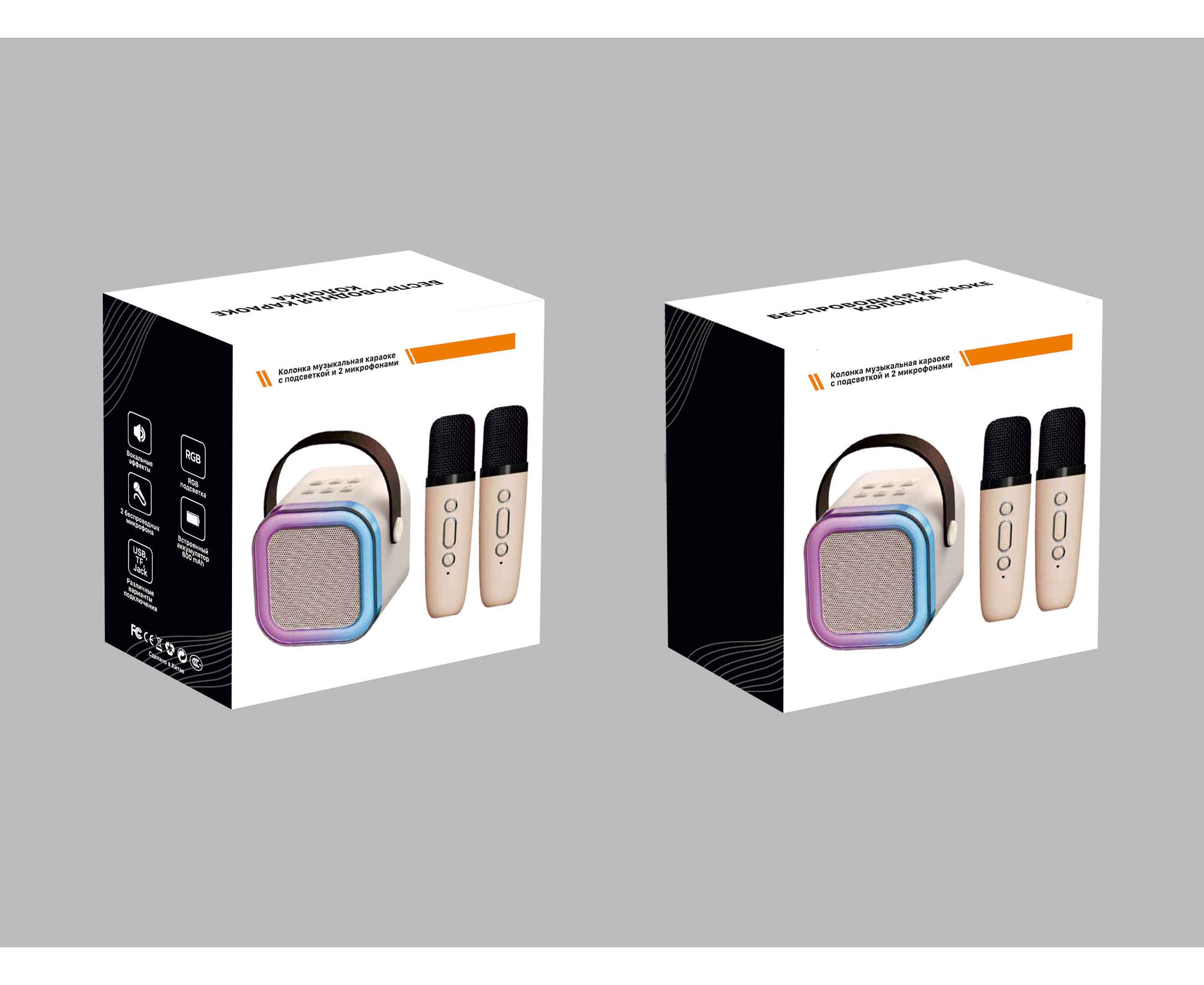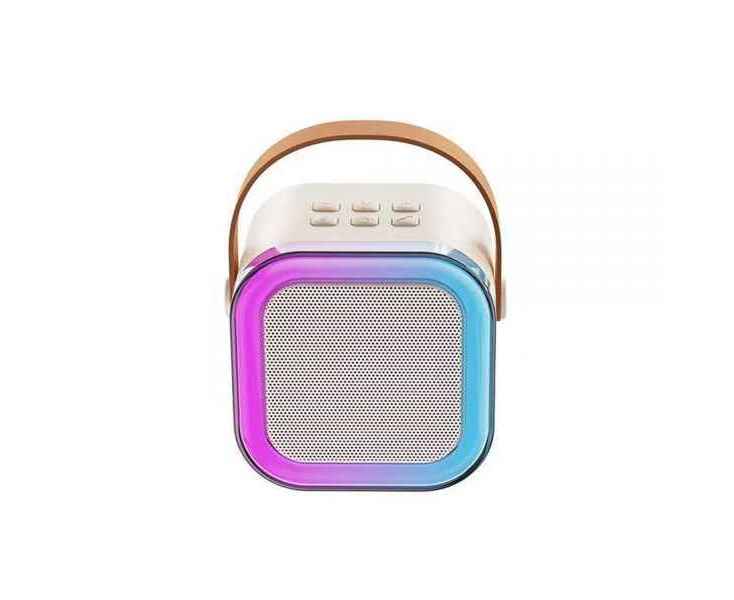 Bluetooth-колонка мощностью 3W с аккумулятором на 600 mAh. В комплекте два микрофона. Яркая RGB-подсветка с разными режимами задает неповторимую атмосферу. Доступно воспроизведение c USB-флешек, TF-карт, проводом через разъем jack.
