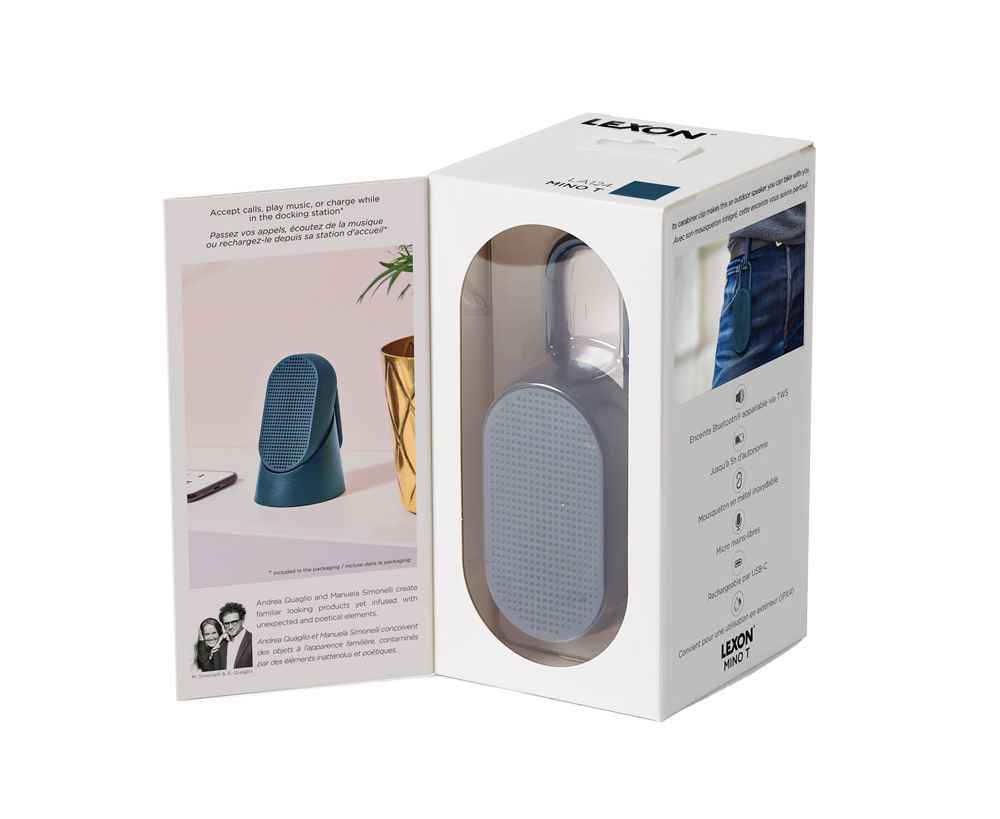 Mino T — это универсальная Bluetooth-колонка, созданная для путешествий. Карабин позволяет легко прикрепить её к сумке или велосипеду. Благодаря элегантному дизайну она гармонично впишется в интерьер, став современным элементом. Оснащённая пассивной басовой системой, Mino T обеспечивает качественное прослушивание, гарантируя сбалансированный и насыщенный звук в дороге. Не беспокойтесь о дожде: сверхпрочное покрытие делает её водонепроницаемой. Наслаждайтесь до 5 часов автономной работы в любых приключениях. Отвечайте на звонки, слушайте музыку или заряжайте колонку через кабель USB-C, установив её на док-станцию.