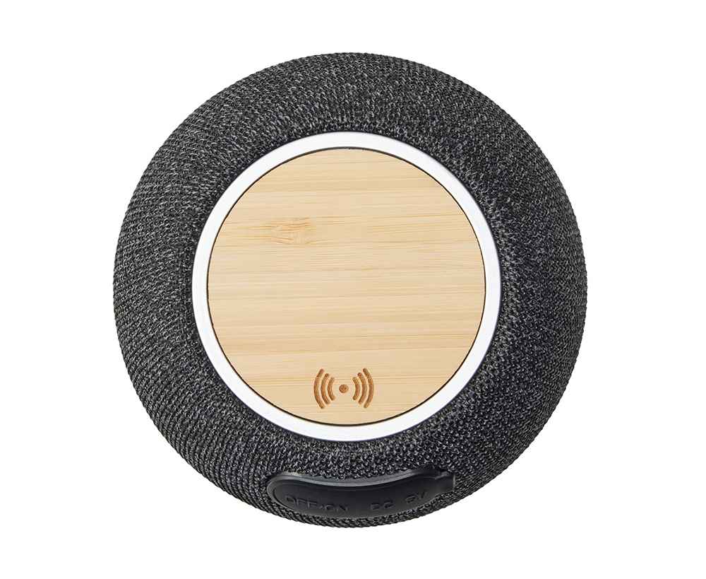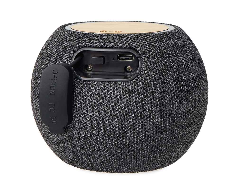 Bluetooth-колонка мощностью 5 Вт обеспечивает качественное звучание для средней комнаты или офиса. А верхняя панель из бамбука с беспроводной зарядкой позволяет подзаряжать смартфон, просто положив его на колонку. Зарядка работает при подключении кабеля — удобно и практично!