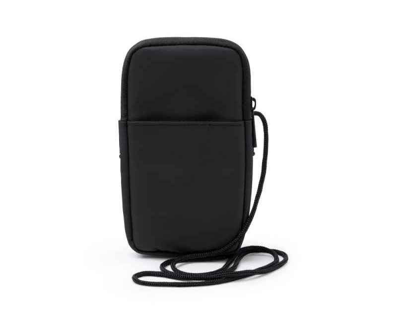 Сумка для мобильного телефона из искусственной кожи. Основное отделение закрывается на молнию. Внешний карман и регулируемый ремешок для переноски.
