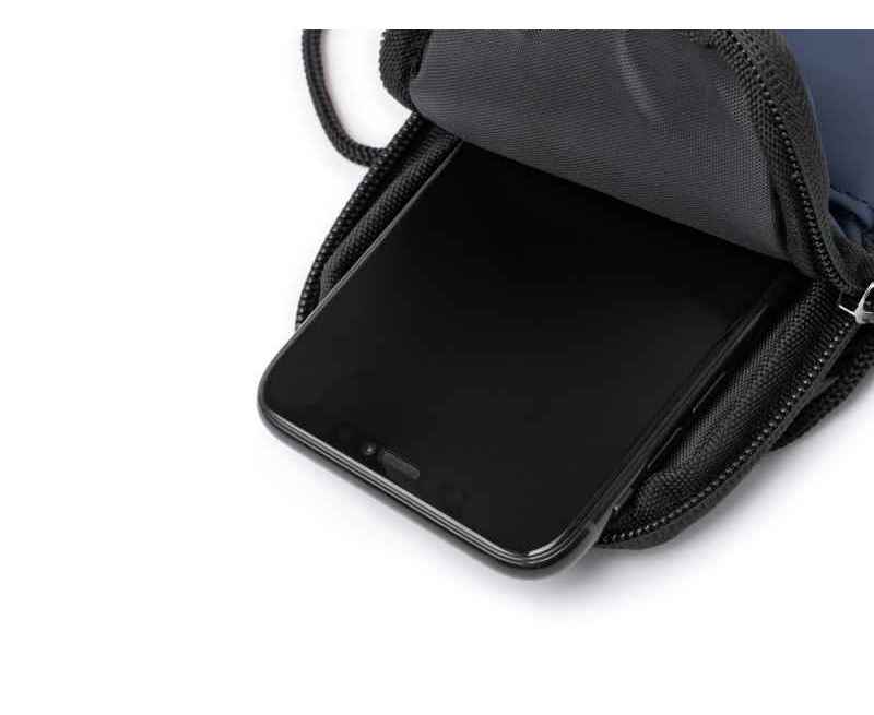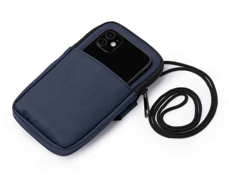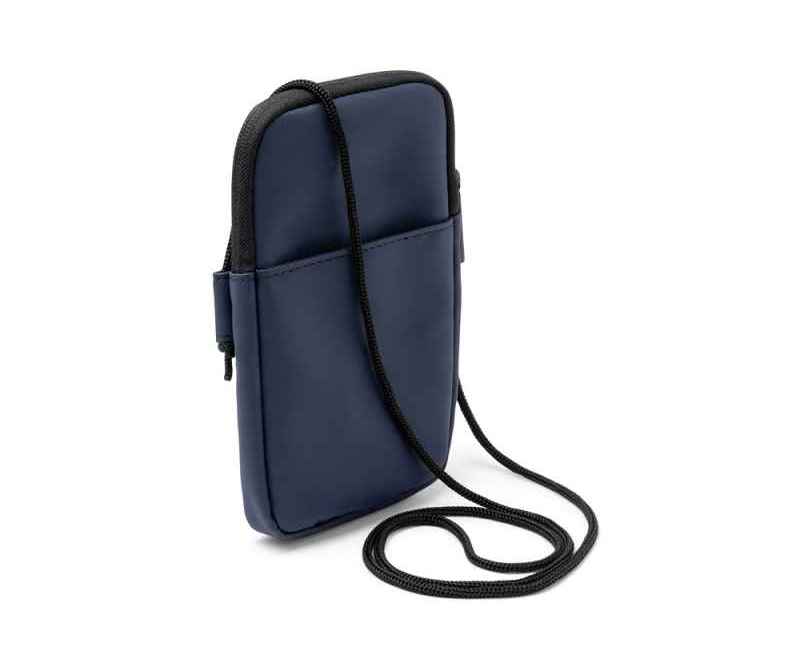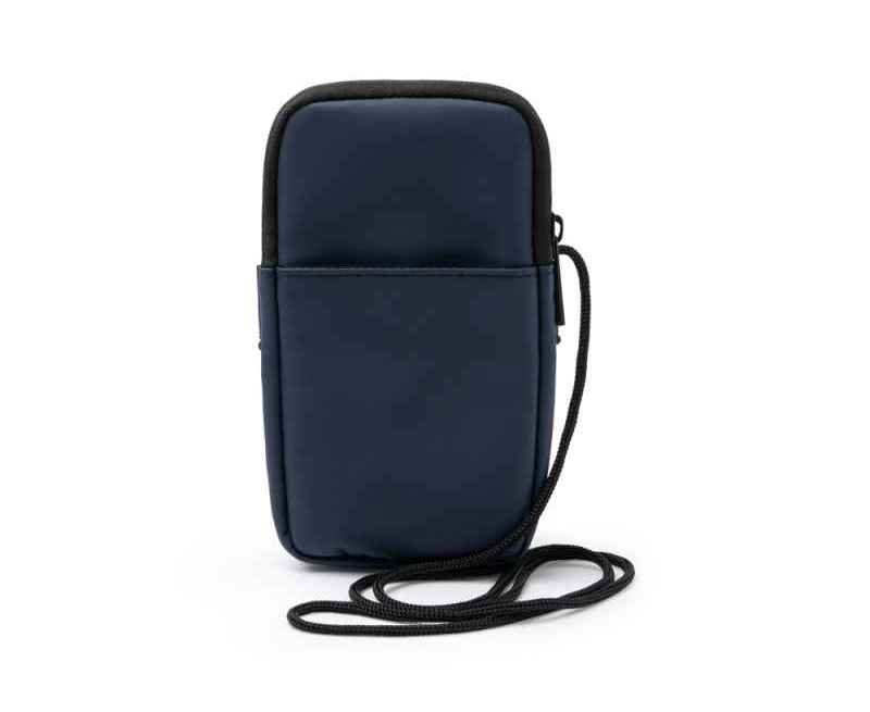 Сумка для мобильного телефона из искусственной кожи. Основное отделение закрывается на молнию. Внешний карман и регулируемый ремешок для переноски.