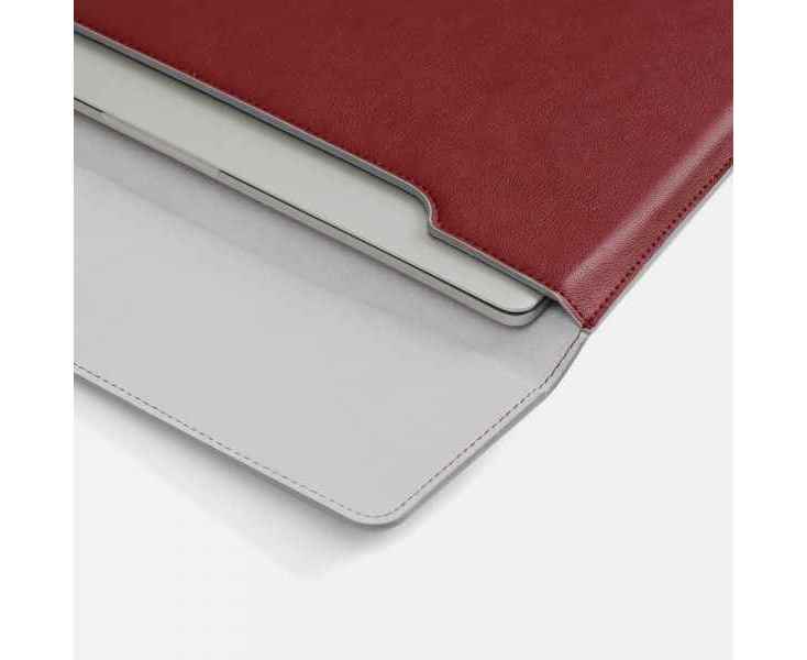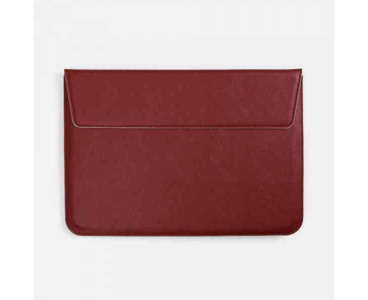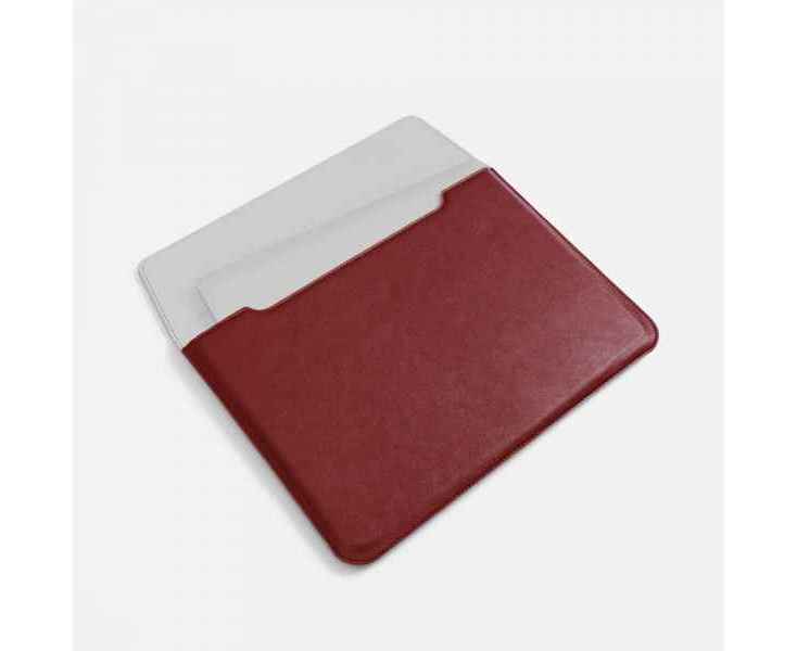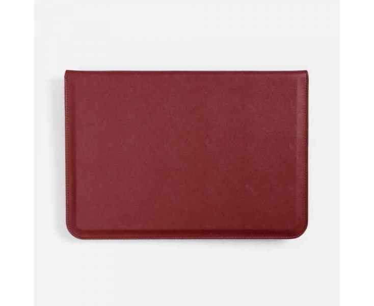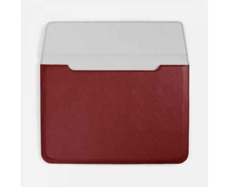 Чехол для ноутбука с диагональю до 15,6 выполнен из материала Petrus, красного цвета, дополнен окрашенным срезом края серого цвета.