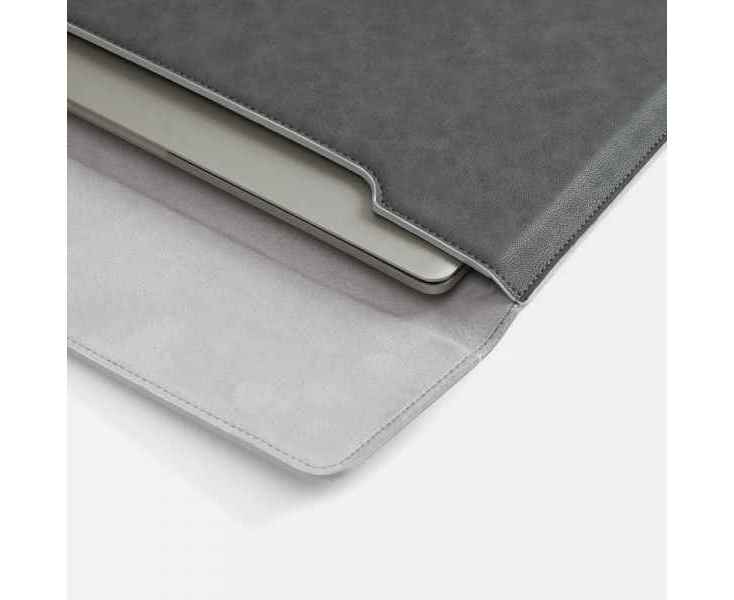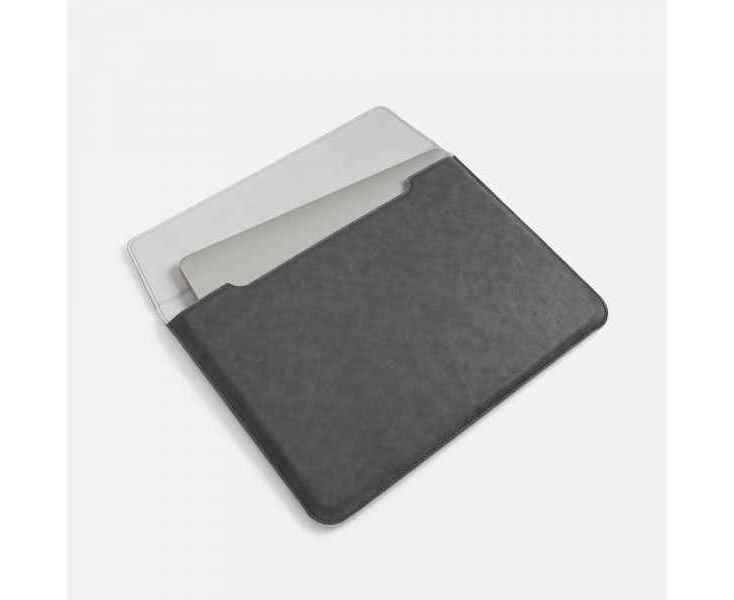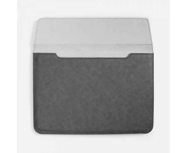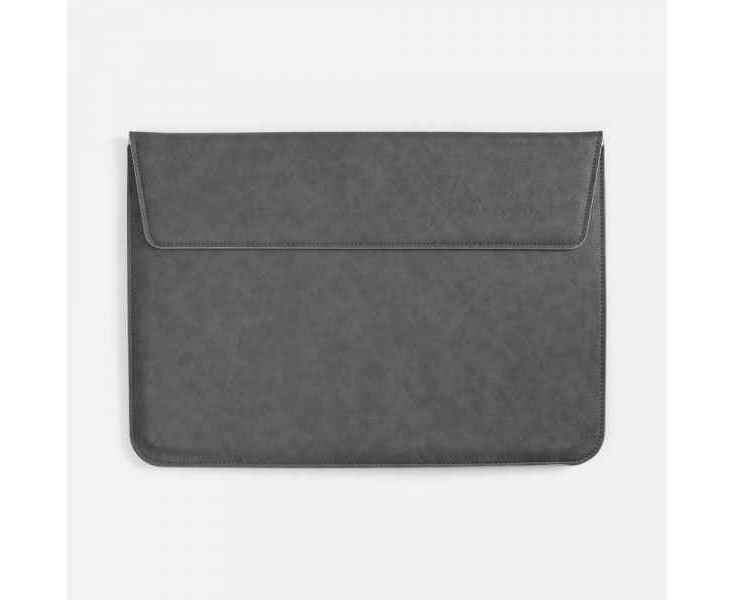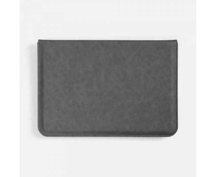 Чехол для ноутбука с диагональю до 15,6 выполнен из материала Petrus, серого цвета, дополнен окрашенным срезом края серого цвета.
