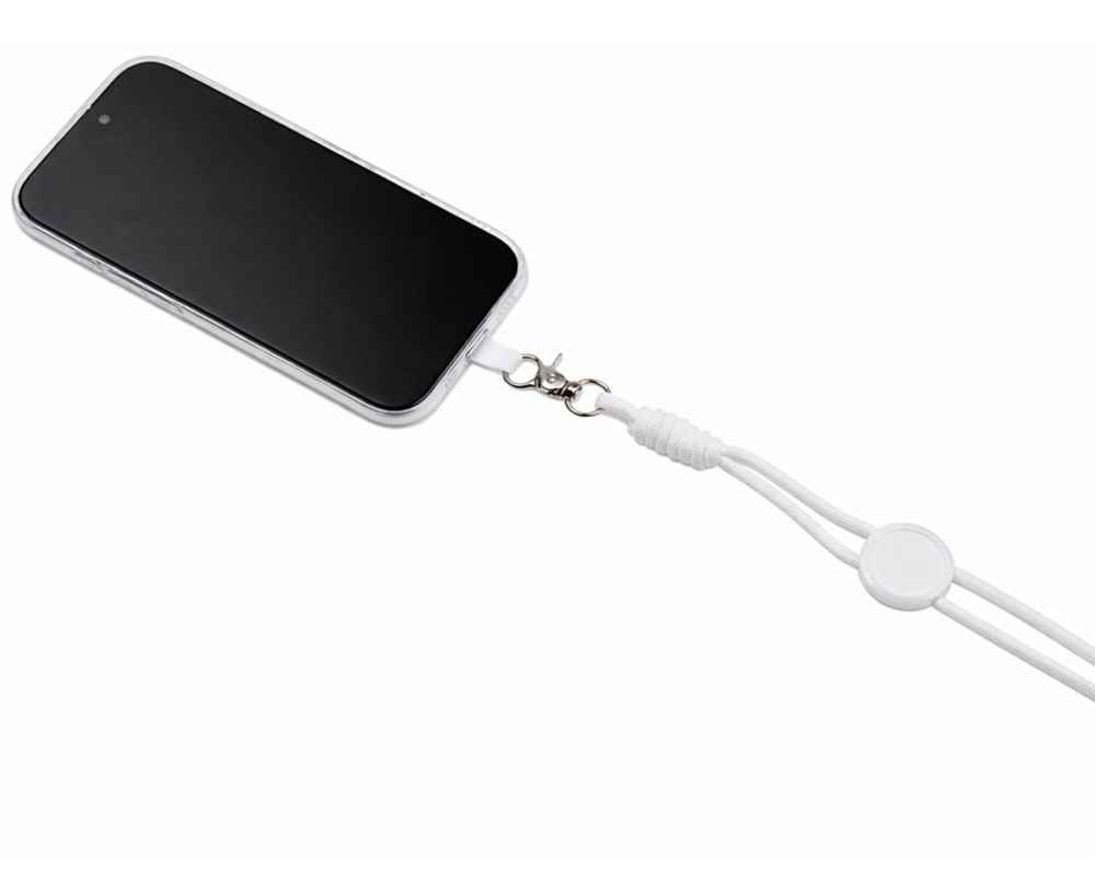 Прочный плетёный шнур устойчив к износу, а надежный карабин позволяет безопасно закрепить смартфон, бейдж, пропуск, ключи или другие необходимые аксессуары.
