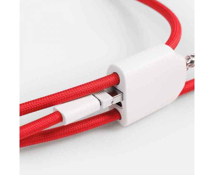Кабель в прочной нейлоновой оплетке не заламывается и не путается, а закрепленные в гнездах держателя адаптеры с разъемами USB-A и Apple Lightning выручат в любой ситуации.
