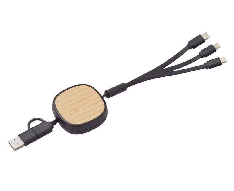 Универсальный кабель с ретрактором 3-в-1 Retrax — это стильное и практичное решение для зарядки и передачи данных на ходу. Компактный корпус из экологичного бамбукового покрытия сочетается с удобной системой автоматического складывания, что делает его идеальным спутником в путешествиях, на работе и в повседневной жизни. Кабель оснащён тремя разъёмами: USB-A, Micro-USB и Lightning, обеспечивая совместимость с широким спектром устройств — от смартфонов до планшетов и других гаджетов. Благодаря прочной конструкции и элегантному дизайну, Retrax станет незаменимым аксессуаром для тех, кто ценит функциональность и стиль. Поставляется в фирменной коробке bamboo collection.