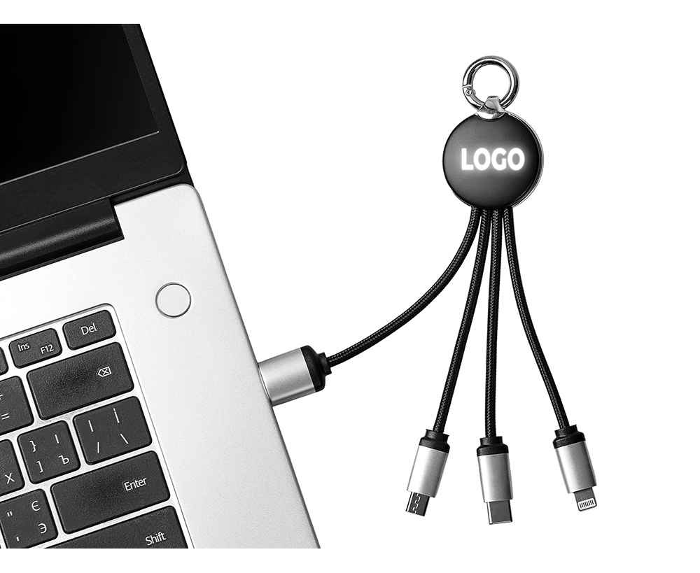Универсальный зарядный кабель-брелок 3 в 1 — компактное решение для современного цифрового образа жизни. Этот полезный гаджет поддерживает три типа подключения (micro USB, USB-C, Lightning), обеспечивая зарядку от любого USB-A-источника — будь то ноутбук, адаптер или powerbank. Персонализированная гравировка ярко светится при работе, создавая уникальный визуальный акцент, а прочное кольцо-карабин позволяет зафиксировать кабель на ключах или рюкзаке. Компактный размер обеспечивает комфортное повседневное ношение. С этим кабелем вы всегда будете готовы к зарядке — где бы ни находились!