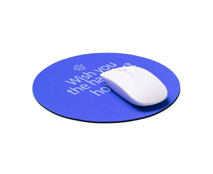 Круглый коврик для мышки с мягкой поверхностью из полиэстера и нескользящим основанием.