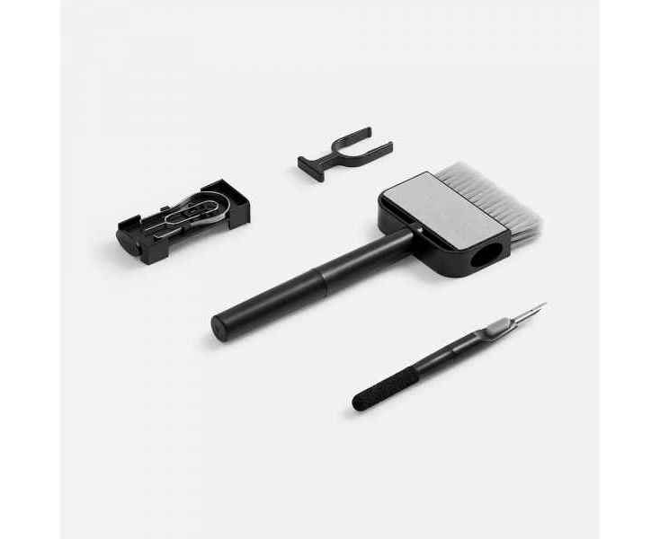 Набор предназначен для всех типов гаджетов. Инструменты компактно складываются внутрь большой щетки.