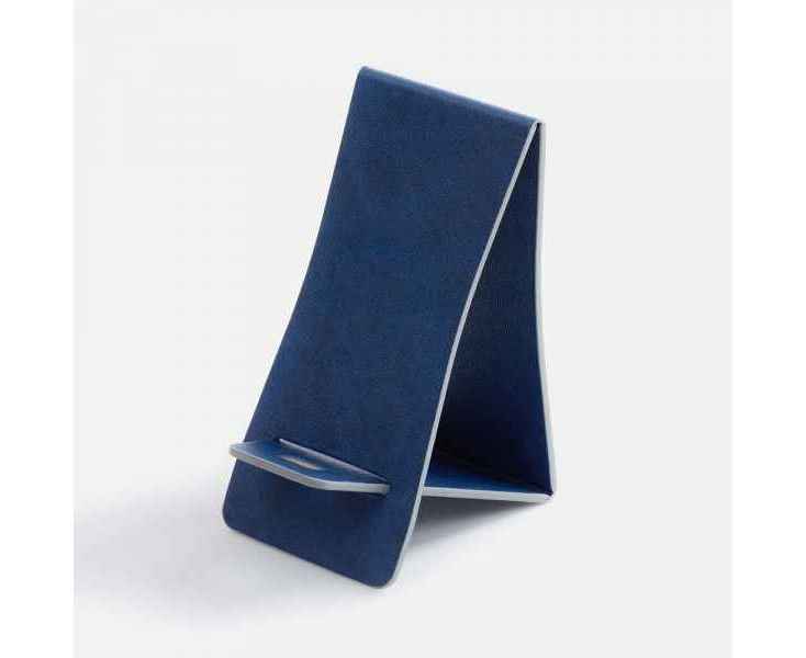 Складная подставка для телефона с вырубкой под шнур зарядного устройства. Выполнена из материала Petrus.