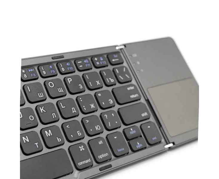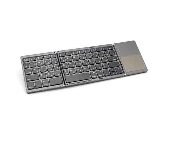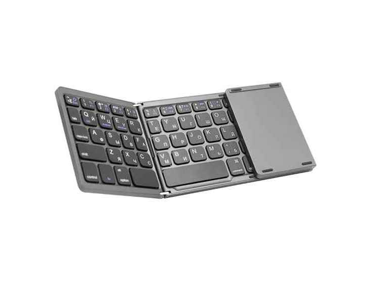 Портативная раскладная клавиатура Flexibord отличный помощник в путешествии, походе или кафе - в любом месте где можно удобно устроится с планшетом или телефоном для виртуального серфинга или общения в чате. Имеется удобный touchpad c отличной реакцией отклика. Встроенный аккумулятор, обеспечивающий продолжительность работы в 3-4 часа. И что самое приятное, раскладка клавиатуры дублируется русским алфавитом.