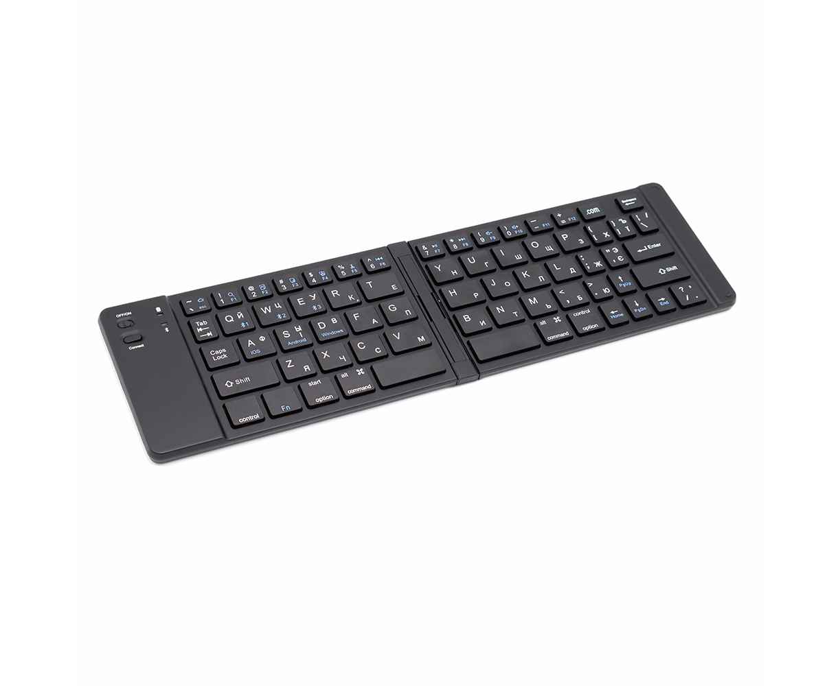 Портативная раскладная клавиатура Token удобный девайс в дороге и на работе. Быстрое подключение, компактный размер - помощник при работе с мобильным телефоном и планшетом. Встроенный аккумулятор, обеспечивающий продолжительность работы в 3-4 часа. Клавиатура маркирована русским языком.