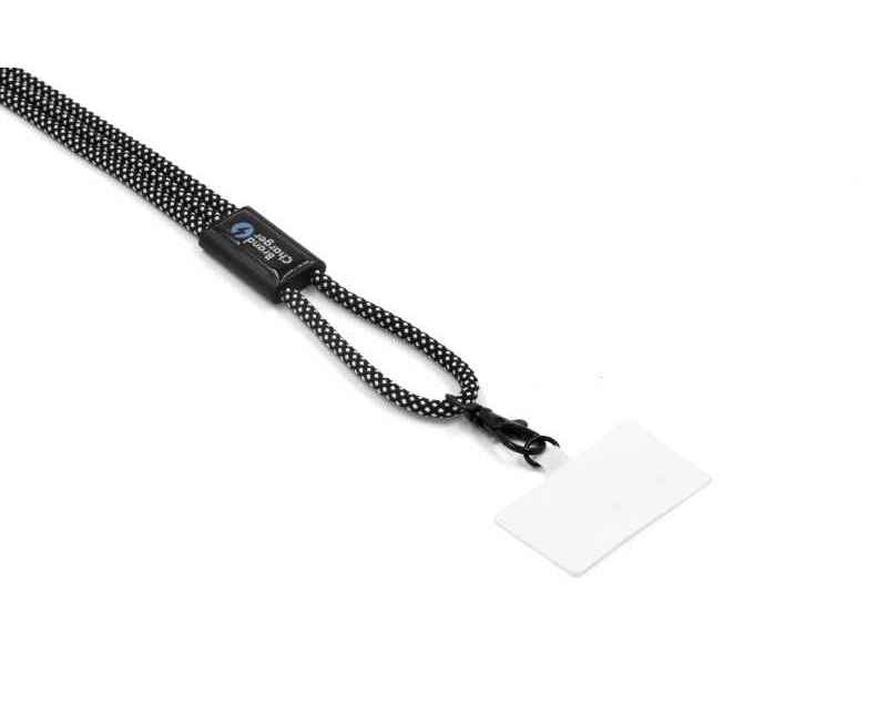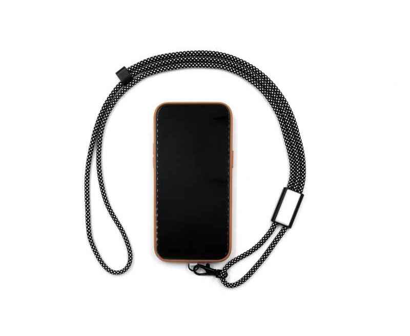Экологичный ремешок-кабель для телефона из переработанных бутылок RPET и прочного алюминиевого корпуса. Оснащён двумя портами USB Type-C, поддерживает быструю зарядку мощностью 60 Вт и передачу данных USB 2.0. Совместим с большинством чехлов для телефонов, выдерживает нагрузку до 8 кг. Длина кабеля 170 см, Толщина шнура 6,5 мм. Сертифицирован по стандарту RCS (Recycled Claim Standard).