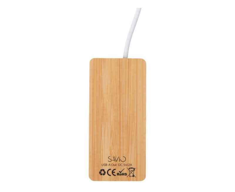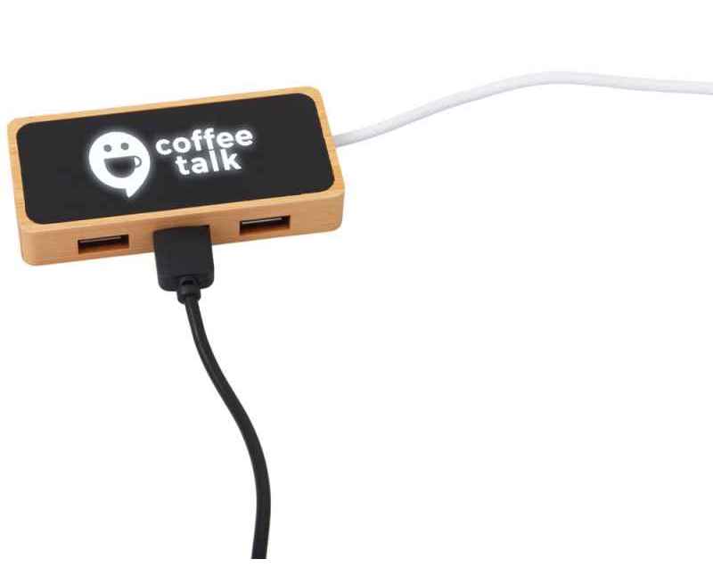 Универсальный USB-хаб, созданный для тех, кто ценит порядок, экологичность и стиль в рабочем пространстве. Корпус устройства изготовлен из натурального бамбука и переработанного ABS-пластика — это не только подчеркивает вашу заботу об окружающей среде, но и придаёт хабу теплый, премиальный вид, вписывающийся в любой интерьер — от домашнего офиса до коворкинга. Устройство оснащено тремя портами USB-A и одним USB-C, обеспечивая подключение всех необходимых гаджетов одновременно. А встроенная белая подсветка с возможностью нанесения логотипа — это не просто функция, а элегантный акцент: ваш бренд или инициалы мягко светятся, привлекая внимание и добавляя индивидуальности вашему workspace.
