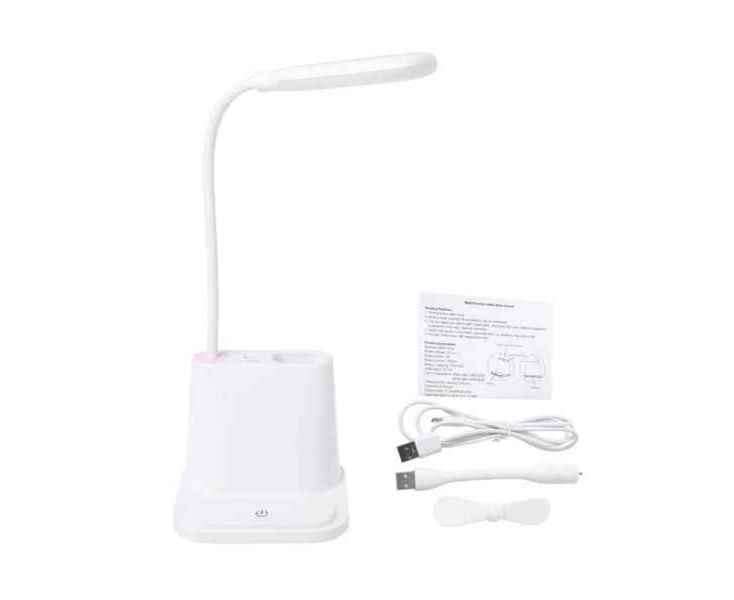Настольная лампа c вентилятором 'Terra Quadro', так же включает в себе органайзер для канцелярии. Два типа освещения – теплый и холодный свет. Напряжение: 5 В. Ток: 1000 мА. Встроенная батарея 2000 mAh (непрерывное время работы лампы 8.5 часа). Комплектация: 1 вентилятор (USB), 1 USB кабель, 1 инструкция.