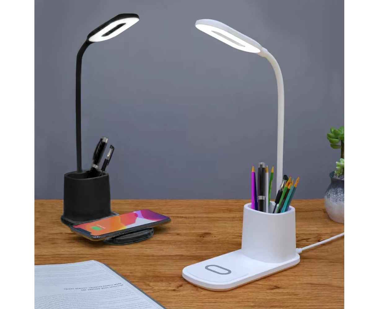 Практичная настольная лампа Tenza для использования в офисе и доме. Стильный лаконичный дизайн и гибкое поворотное регулирование лампы удобно в использовании как на офисном столе, так и прикроватной тумбе. Возможность выбирать степень яркости света несомненный плюс. Держатель для ручек дополняет функциональность. И безусловный лидер популярности – это функция беспроводной зарядки Qi. Тип лампы LED (0.5 x 20 световых диодов. Цветовая температура 3000-6000К). Беспроводная зарядка 10W. Питание: 5V/2A / 100~240V/50-60Hz. В комплекте кабель USB и инструкция. Размер в упаковке: 8,3*11*20,5 см