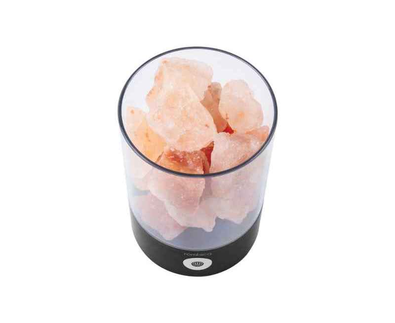 Главный декоративный элемент ночника выполнен из кристаллов природной соли. Под действием нагревания лампы выделяют отрицательные ионы, а вместе с ними мелкие частички соли, в результате этого микроклимат в помещении улучшается. Благодаря элегантному дизайну и небольшому размеру ночник удачно дополнит любой интерьер.