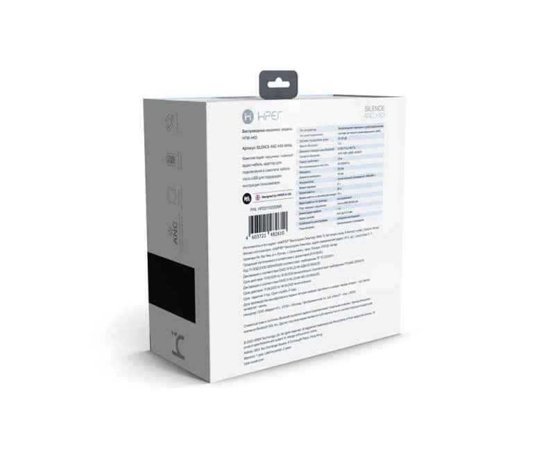 Для качественного звука используются 40-миллиметровые динамики, а сам аксессуар работает на стандартных частотах в диапазоне от 20 до 20000 Гц. Hiper Silence ANC HX3 быстро подключается к мобильным девайсам по беспроводному интерфейсу Bluetooth 5.0 и не теряют соединение на расстоянии до 15 м. При желании можно воспользоваться обычным кабелем, для чего на корпусе предусмотрен разъём 3,5 мм.
