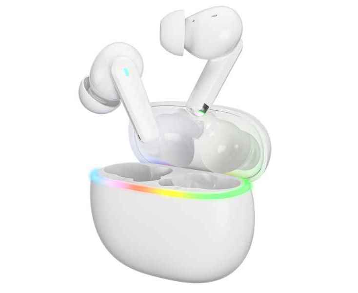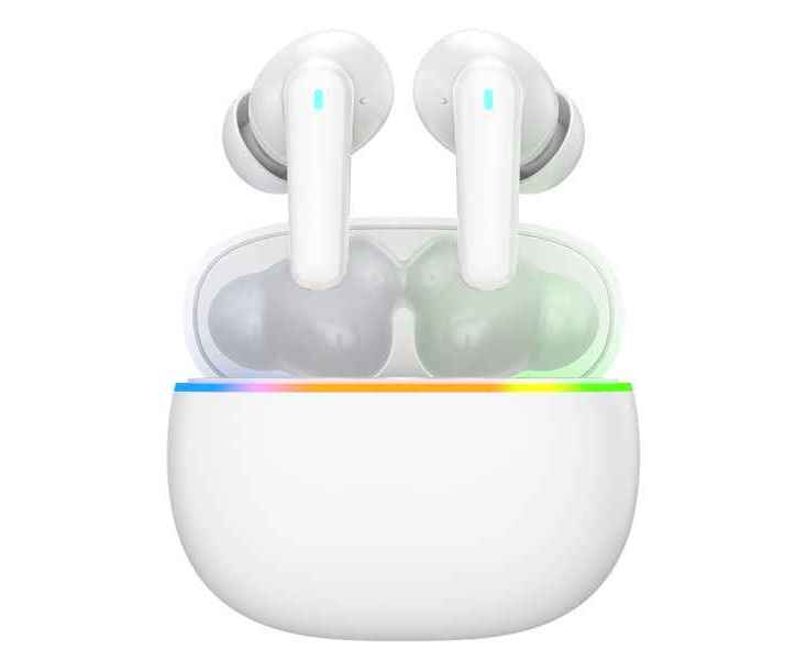 Основным преимуществом данной модели является наличие встроенной светодиодной RGB ленты по периметру ободка кейса, которая изменяет цвета в зависимости от режима работы наушников и кейса.