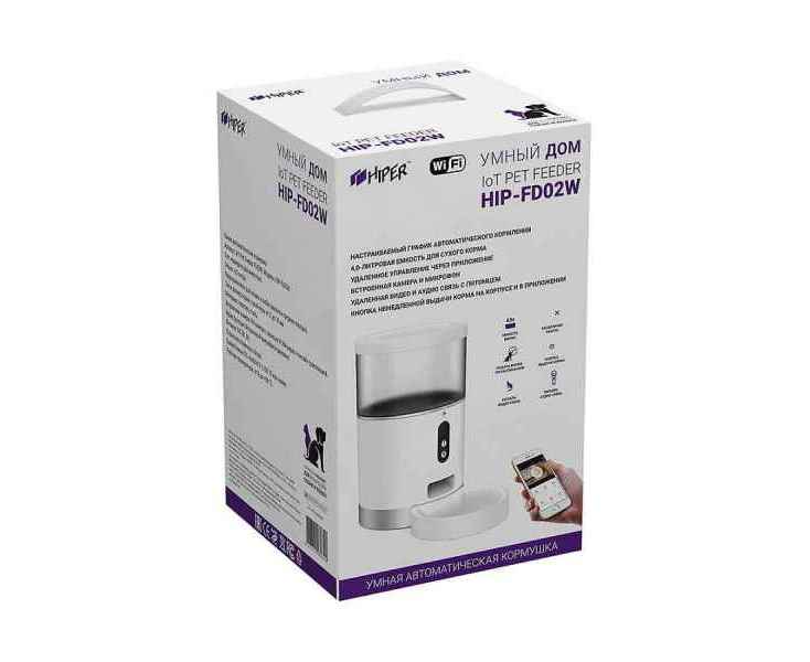Умная автоматическая кормушка для кошек и собак. Даже находясь в далеке от дома Ваш питомец всегда будет под присмотром, накормлен и доволен. Встроенная камера, микрофон и динамик позволят не только увидеть и услышать Вашего питомца, но и пообщаться с ним голосом. Вашему любимцу не будет одиноко, а Вы всегда будет спокойны за его здоровье, аппетит и настроение. Подключение при помощи WIFI Полный контроль через приложение HIPER IOT (доступно для iOS и Android). Компактный корпус с большим объемом (4 литра). Выдача корма по расписанию + кормление в любой момент, удаленно из любой точки мира через приложение. Все что Вам нужно, это подключение к интернет.