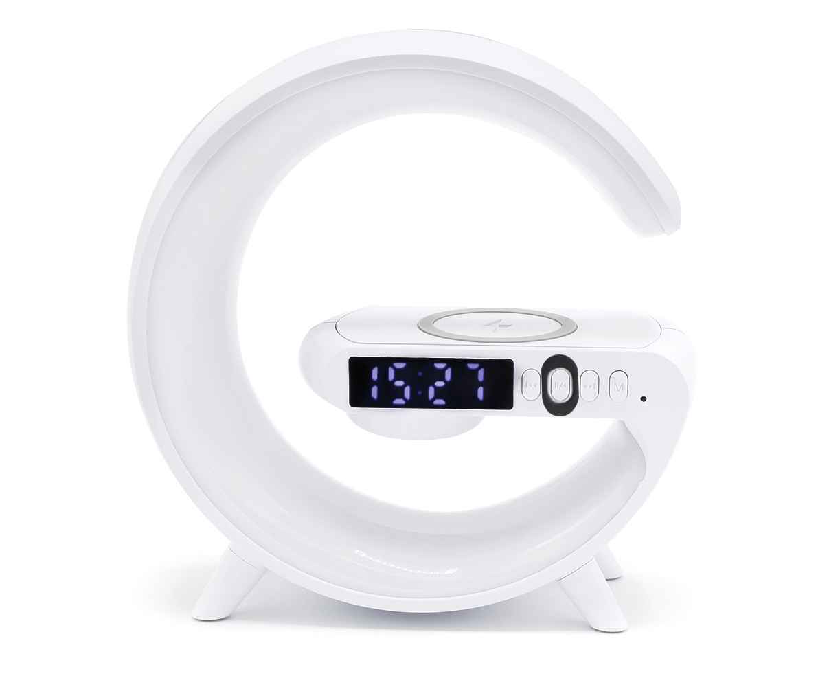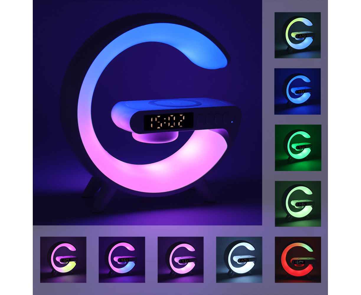 Беспроводная колонка с функцией беспроводной зарядки. Часы, будильник, RGB-подсветка, а так же защитная накладка на кнопке включения являются её особенностями. При остаточном заряде 10-20% подаётся предупреждающий сигнал. Размер: 155*55*160мм Bluetooth: v 5.2 Мощность динамика: 3W Батарея: 3.7V / 300 mAh Время работы: 2-3 Часа Время зарядки: 2,5 Часа Порт зарядки: Type-C Входное напряжение и ток: 5V/2A Беспроводное зарядное выход: 5W.