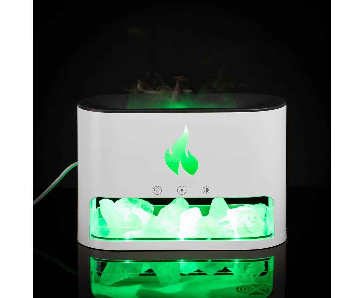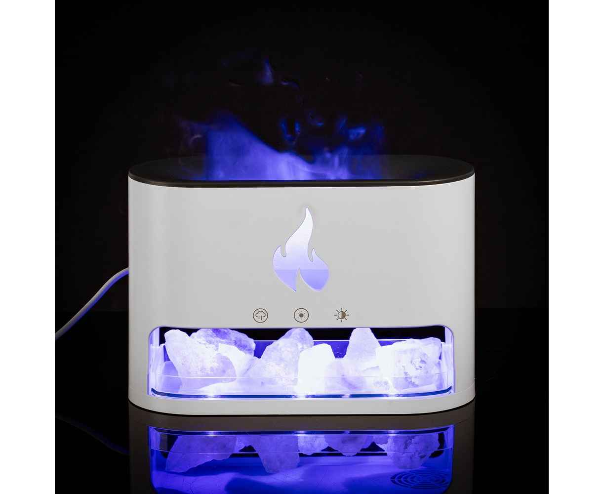 Отличительная черта модели Fusion Blaze — подсветка в виде разноцветного пламени, оттенок которого можно менять на свое усмотрение, а также кристаллы декоративной гималайской соли, размещенные на специальной площадке. Соль ионизирует воздух, делая его немного похожим на морской.