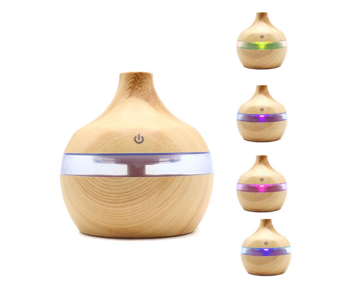 Светодиодный USB арома увлажнитель Holz – это и увлажнитель и арома-диффузор. Несколько капель эфирного масла в воду увлажнителя, наполнит помещение ароматом и свежестью. Имеется 7-ми цветовая подсветка. Подходит для использования дома и в автомобиле. Размер индивидуальной упаковки: 11,5*11,5*12см/178гр. Объем емкости для воды - 300 мл.
