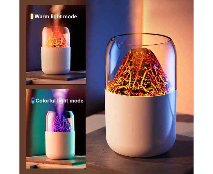 Увлажнитель-аромадиффузор Volcano 2.0, выполнен в виде вулкана, оснащен светодиодной подсветкой, которая создает атмосферу уюта и спокойствия.