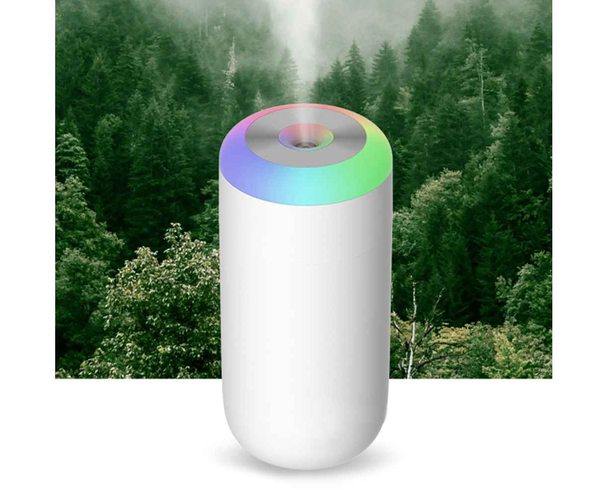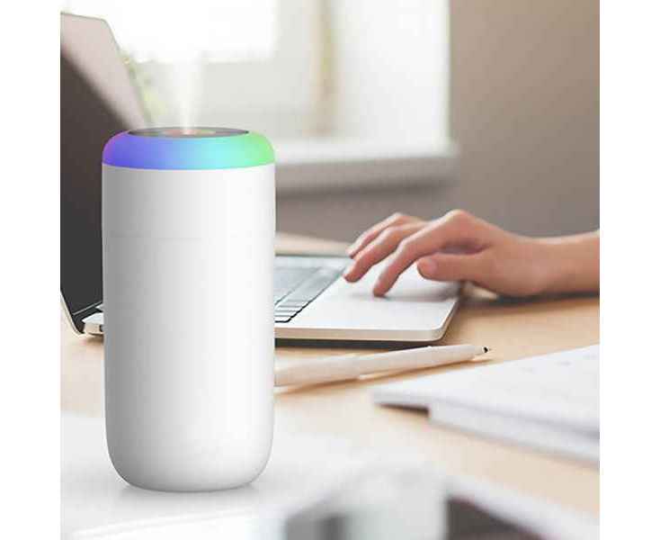 Светодиодный USB увлажнитель Огайо – ультразвуковой увлажнитель воздуха. 7-ми цветовая динамическая радужная подсветка. Добавьте в резервуар необходимое количество воды и несколько капель эфирного масла на водорастворимой основе, для наполнения пространства ароматом и свежестью. Подходит для использования дома и в автомобиле. Резервуар – 350 мл. Размер индивидуальной упаковки: 7,5*7,5*15,5см/176гр